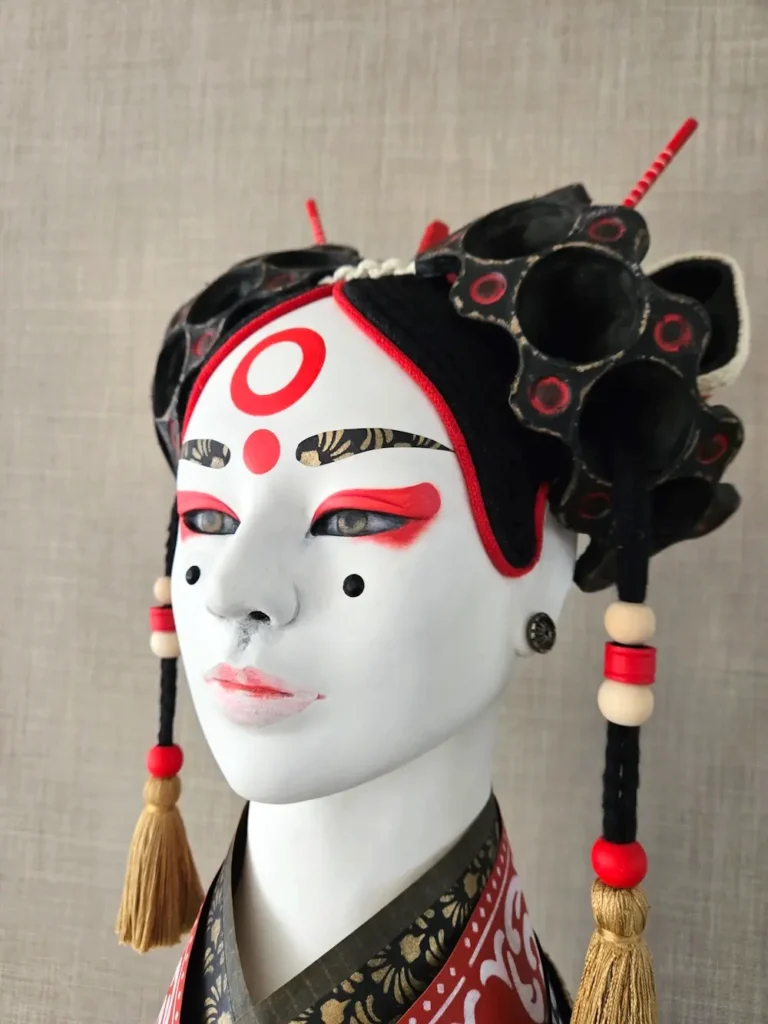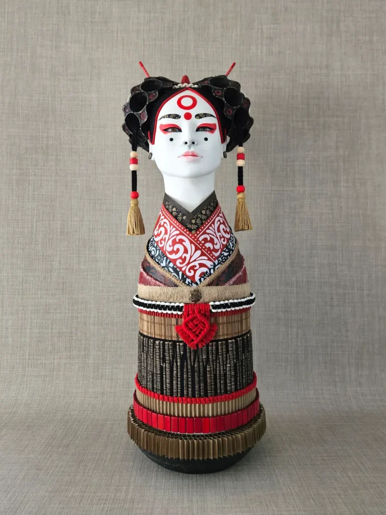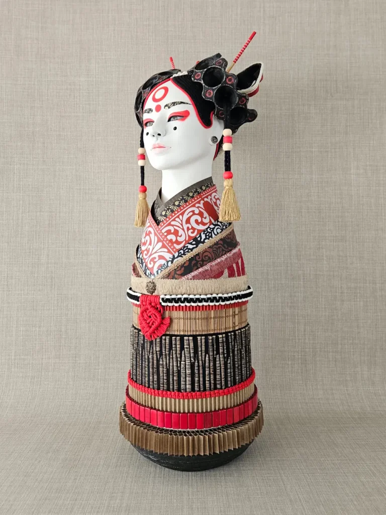 Sora, carboard, paper, paper mâché, natural fibres, discarded fabric, 91x31x31cm